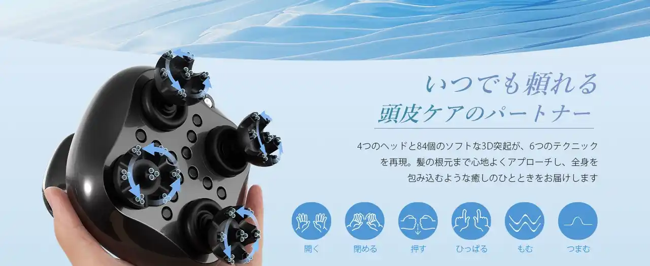 柔軟性と硬さのバランスに優れた高品質シリコンを採用。4つのモードと6種類の動きで、まるでプロの手で揉まれているような心地よさを実現。日々の疲れを癒すリラックスタイムに最適です。 |