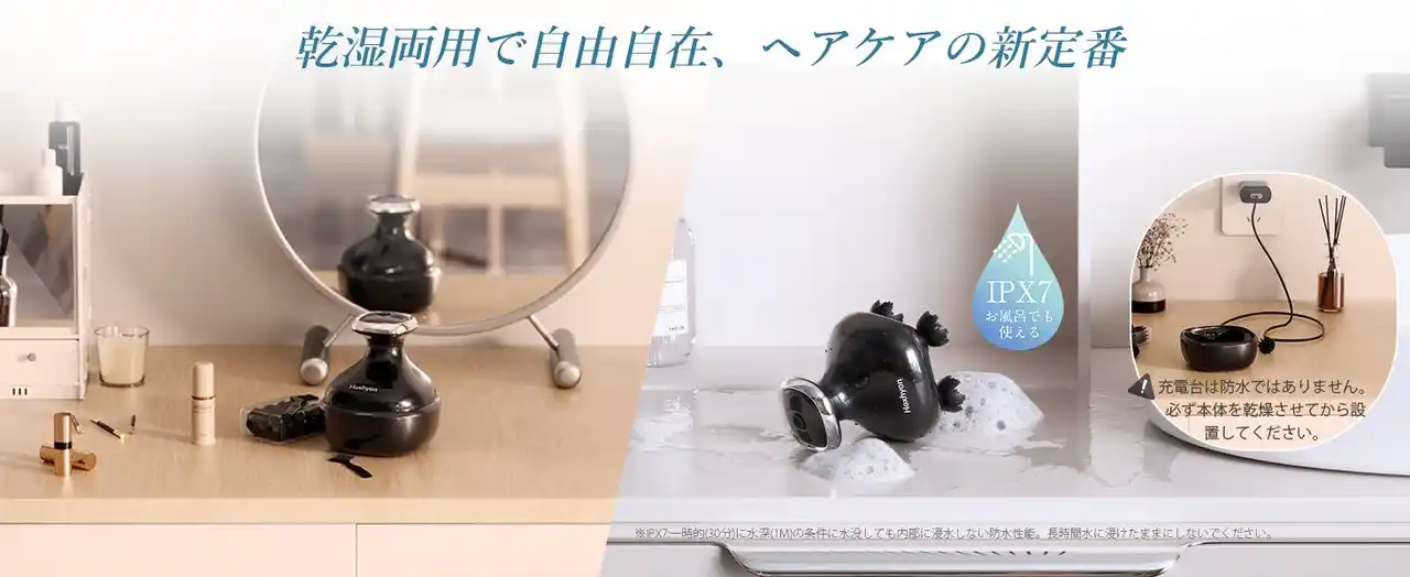 動作音は最大40dBと静かで、家族のいる時間でも安心。IPX7防水対応によりシャワー中でも使用可能で、軽量258gの設計で出張や旅行先でも便利に使用できます。 |