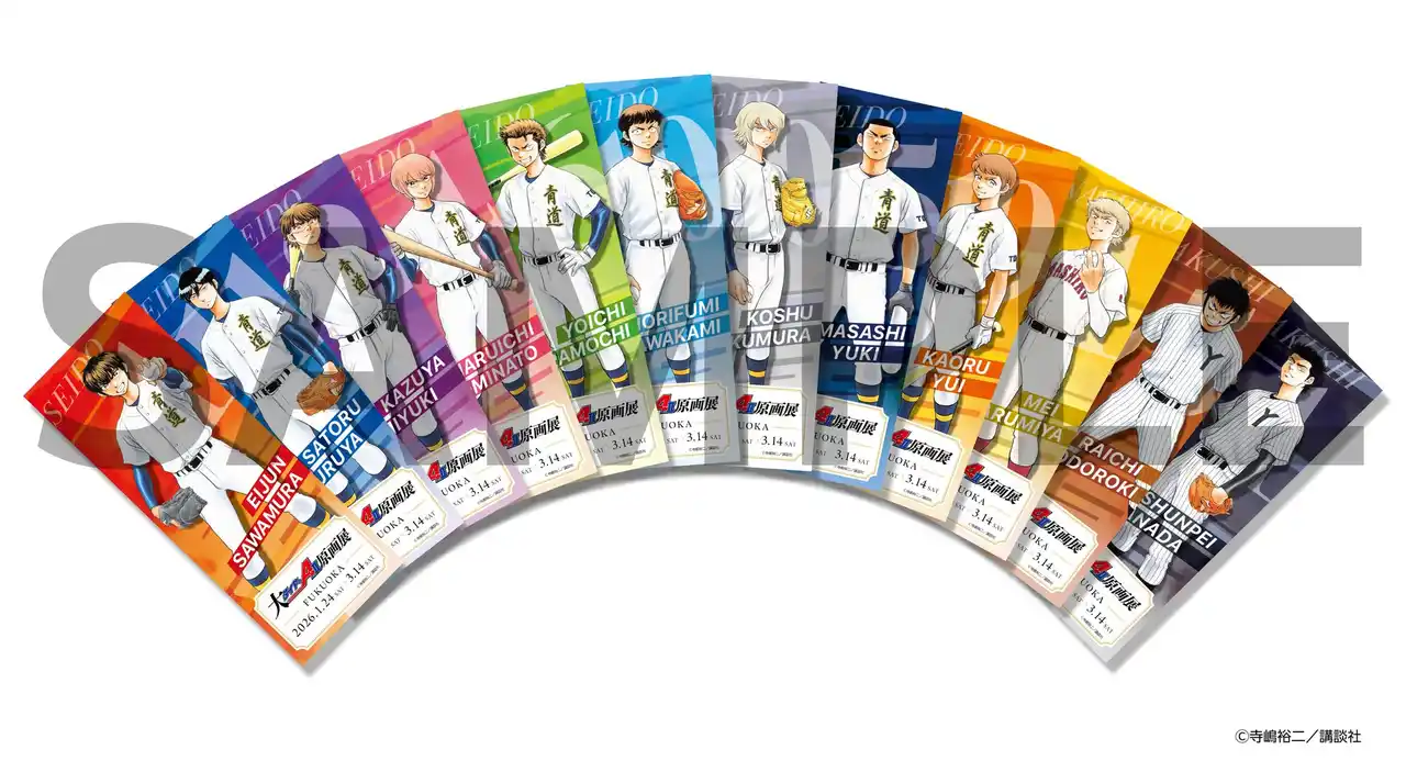 週刊少年マガジン(講談社)で連載され、コミックスの累計発行部数は4,500万部を超える『ダイヤのA』シリーズ(『ダイヤのA』『ダイヤのA actII』)。『ダイヤのA』シリーズ連載20周年を記念し、「大『ダイヤのA actII』原画展」を2026年1月24日(土)からBOSS E・ZO FUKUOKA 6Fイベントホールにて開催。作品の魅力が詰まった展示のほか、バンドル付入場券などファン必見のイベント情報を解禁! |