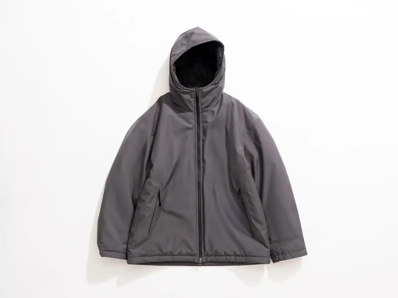 好評を博しているGoldwinとの別注企画より、シンプルな佇まいの中に多くの拘りが詰まったアウタージャケットが登場。今作の表地には、撥水性のあるウールを使用しており、落ち着いた光沢感が特徴。また、2層生地にしているため、防風性に優れているのも魅力です。裏地には、非常に軽くて柔らかい素材を配し、滑りが良く、快適な着心地を実現しております。