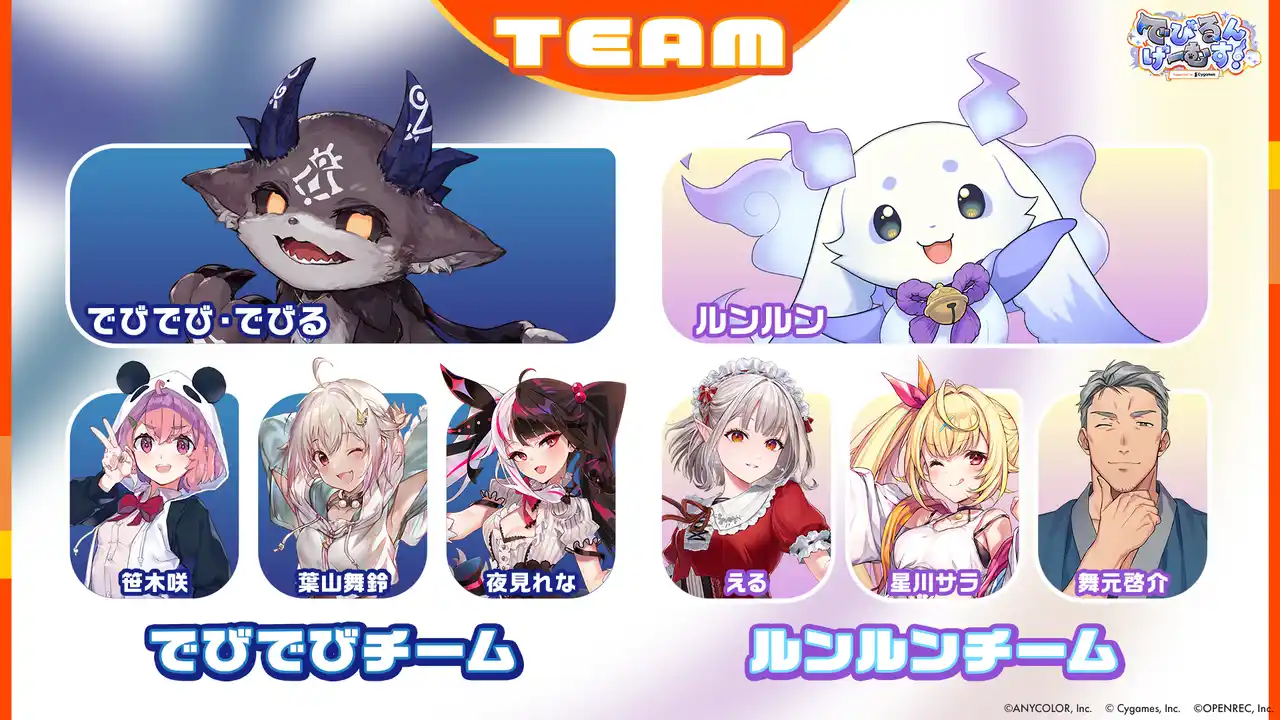 株式会社OPENREC(東京都渋谷区、代表取締役:兵頭陽)は、2025年12月7日(日)にバーチャルライバーグループ「にじさんじ」所属のVTuber「でびでび・でびる」と「ルンルン」がチームを率い、Cygamesのゲームタイトルを舞台にチーム対抗戦を繰り広げるオンラインイベント「でびるんげーむす!Supported by Cygames」 を開催いたします。本イベントは、株式会社OPENRECが主催、株式会社CygamesおよびANYCOLOR株式会社の協力のもと開催され、OPENREC.tv、YouTubeにて配信を予定しています。