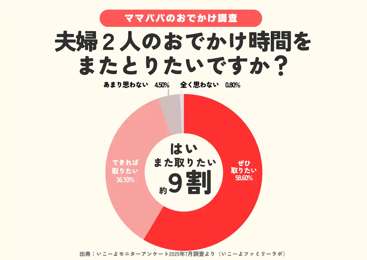 今回の調査からは、「夫婦で過ごす時間を大切にしたい」という気持ちがありながらも、 「預け先がない」「時間が取れない」といった課題に直面している子育て世代の姿が浮き彫りになりました。 夫婦の関係づくりという側面においても、安心して子供を預けられる環境や、親子それぞれが心地よく過ごせるサービスが求められていくと考えられます。 |