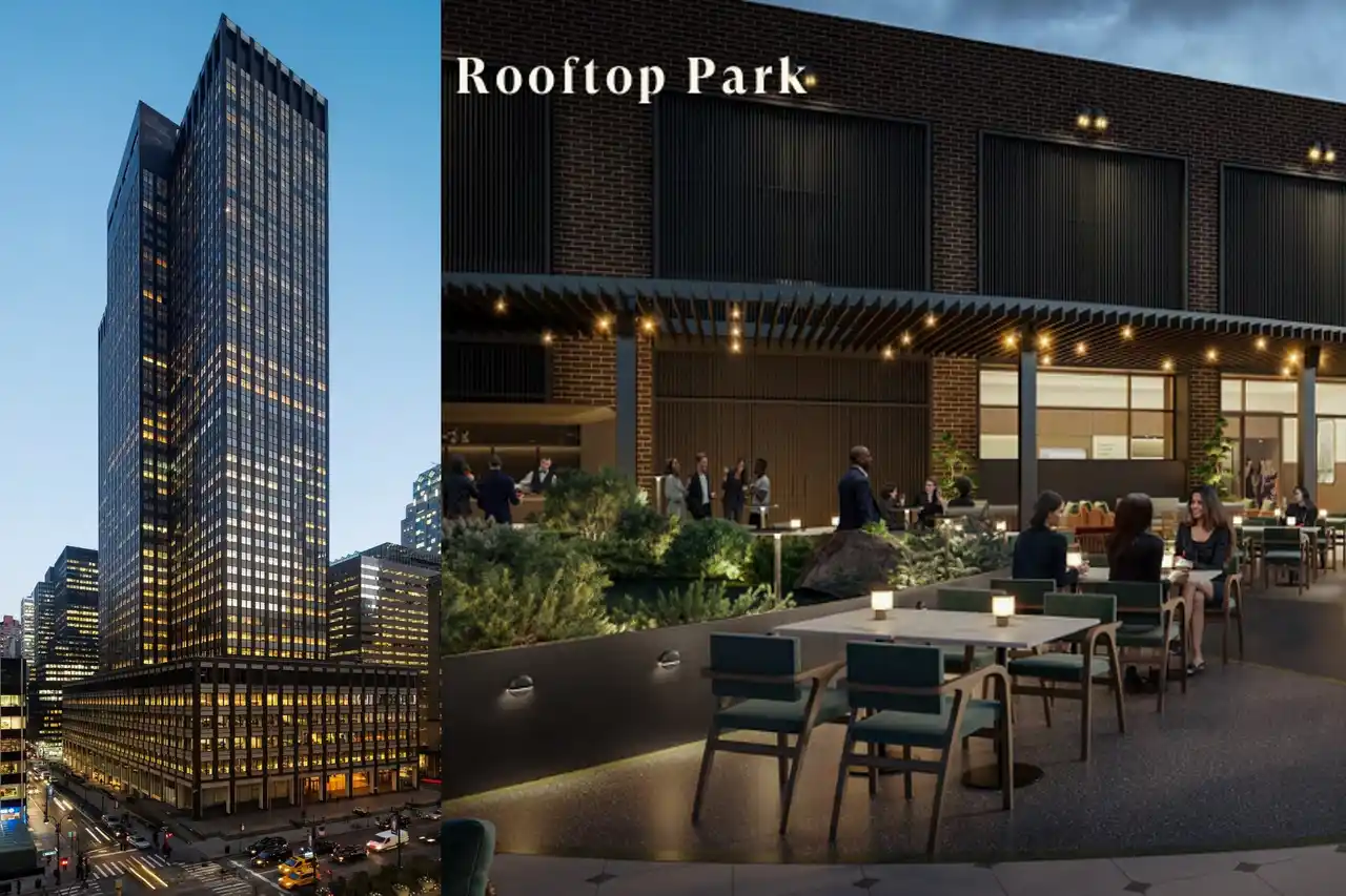 左:245 Park Avenue外観 右:ルーフトップバー(イメージ) |