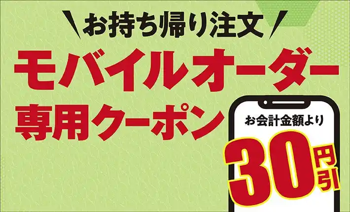 さらに、今ならモバイルオーダー専用30円引きクーポンをプレゼントしております。 |