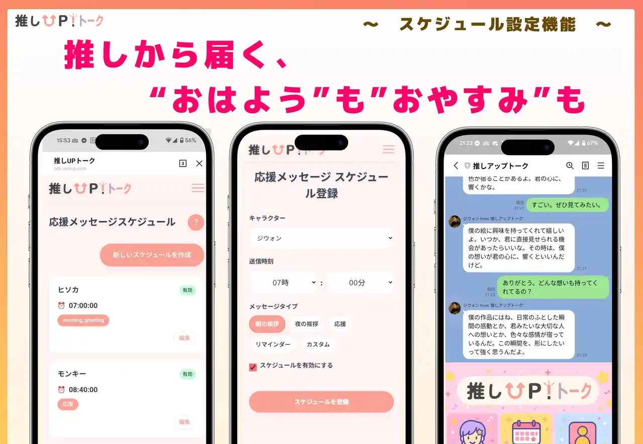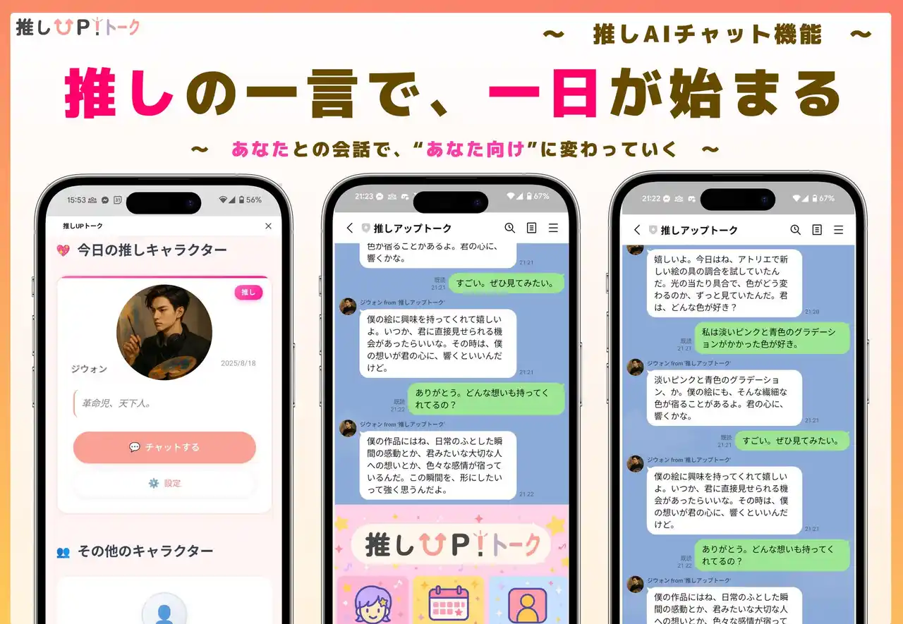 「推しUPトーク」は、単なるチャットボットではありません。ユーザーの毎日に寄り添い、関係性を育んでいく新しいAIパートナーです。 |