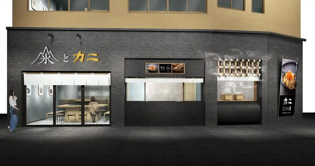 新店舗「氷とカニ」は、JR城崎温泉駅前というアクセス抜群の立地にございます。 「カニ」の甲羅焼に加え、2026年春からは、老舗料亭のこだわりを活かした特製かき氷など「氷」メニューの販売も開始予定です。一年を通じて城崎温泉を訪れるお客様に、熱々または冷たい魅力的な食体験をご提供いたします。 |