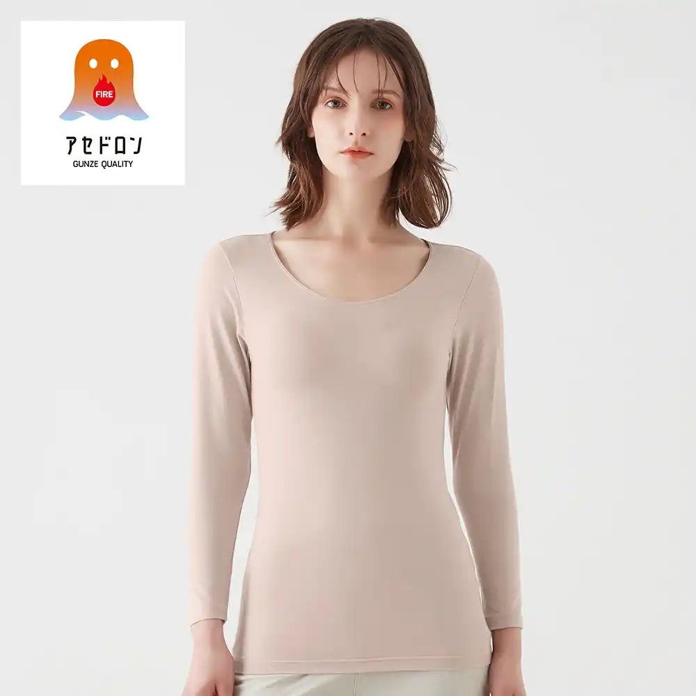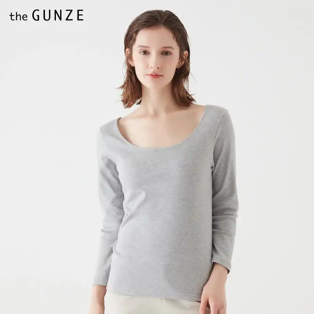 ■【the GUNZE】冬の綿100% 8分袖インナー(えりあき広め) |