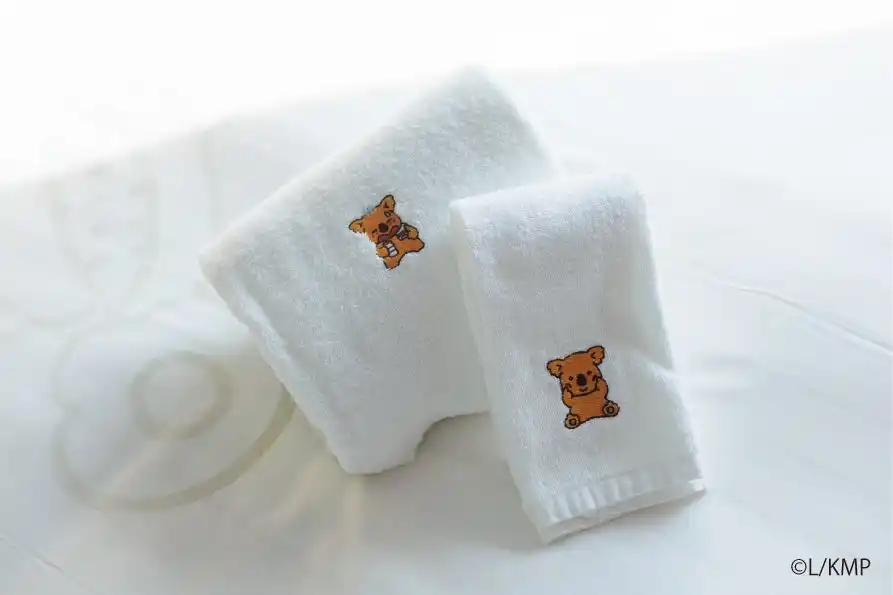 | コアラのマーチには数多くの絵柄がありますが、今回は39種類をデザインに採用。ホテルグッズ定番の「ホテルボーイ マーチくん」「ホテルガール ワルツちゃん」はもちろん、コアラのマーチルームの天井にも描かれている、いたずらツインズ「ドレミくん」「ミレドちゃん」も登場しております。 | ||||||||||||||