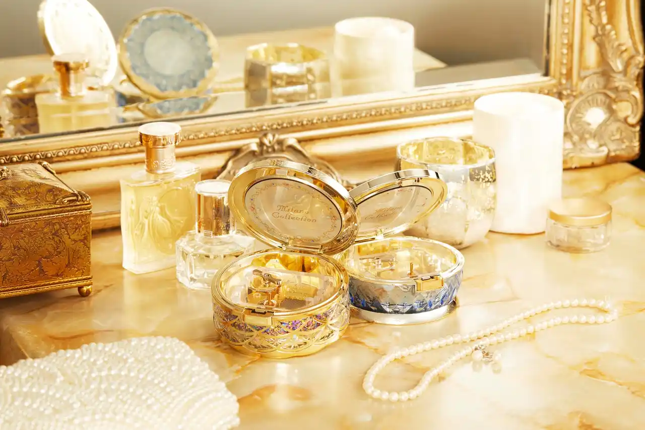お手持ちのミラノコレクション フェースアップパウダー(鏡台タイプ)の容器に、オルゴールをセットしてプレゼントいたします。 |