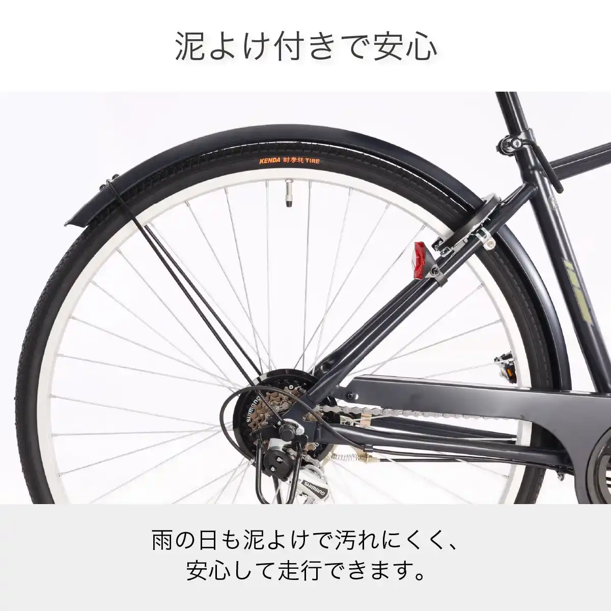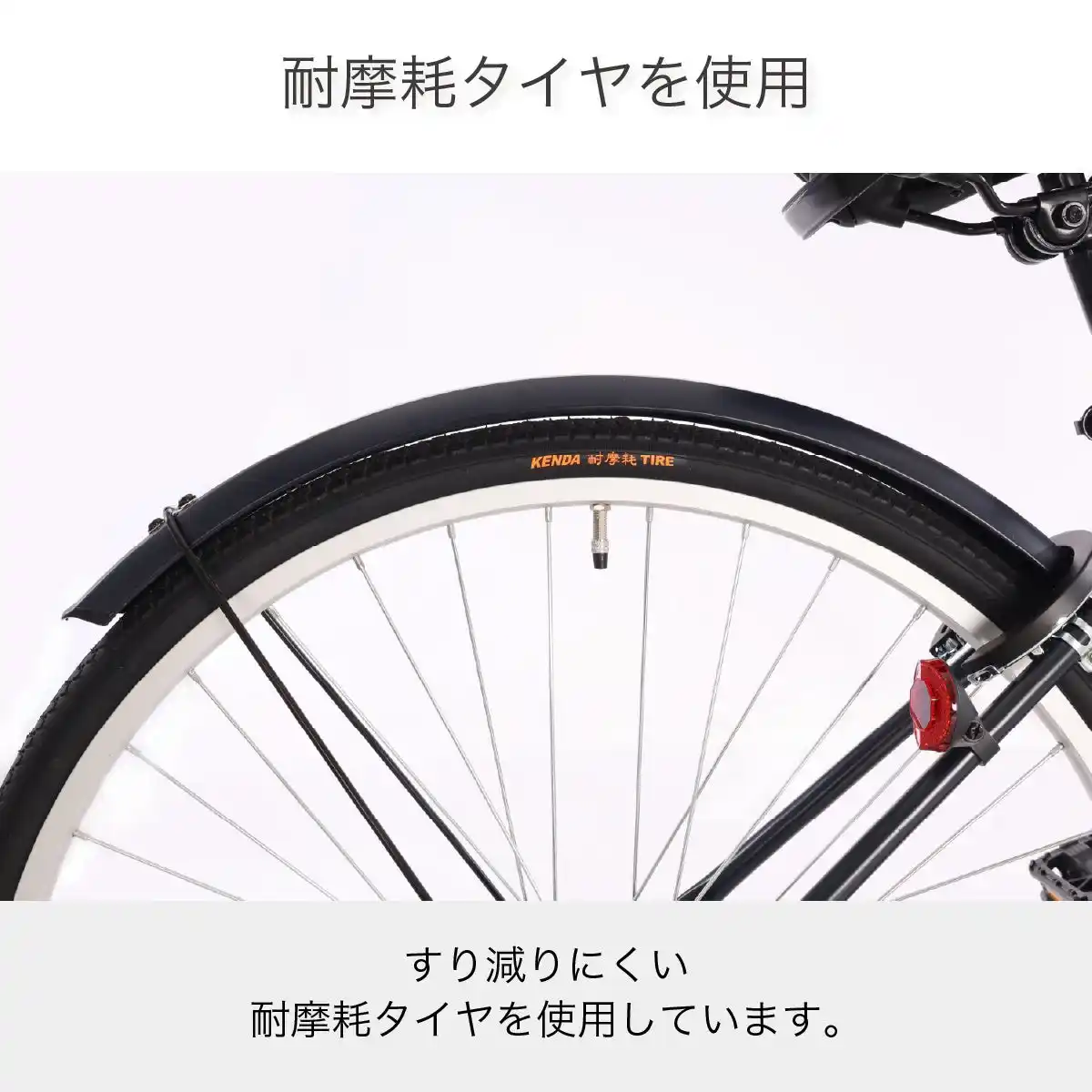 すり減りにくい耐摩耗タイヤを採用し、長期間にわたり快適にご利用いただけるよう配慮しています。さらに、泥よけを備えることで、雨天時でも衣服や荷物が汚れにくく、安心して走行いただける仕様です。 |