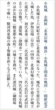 企画展「北条幻庵―横浜・小机城と関東の戦国―」開催記念「御城印」 |