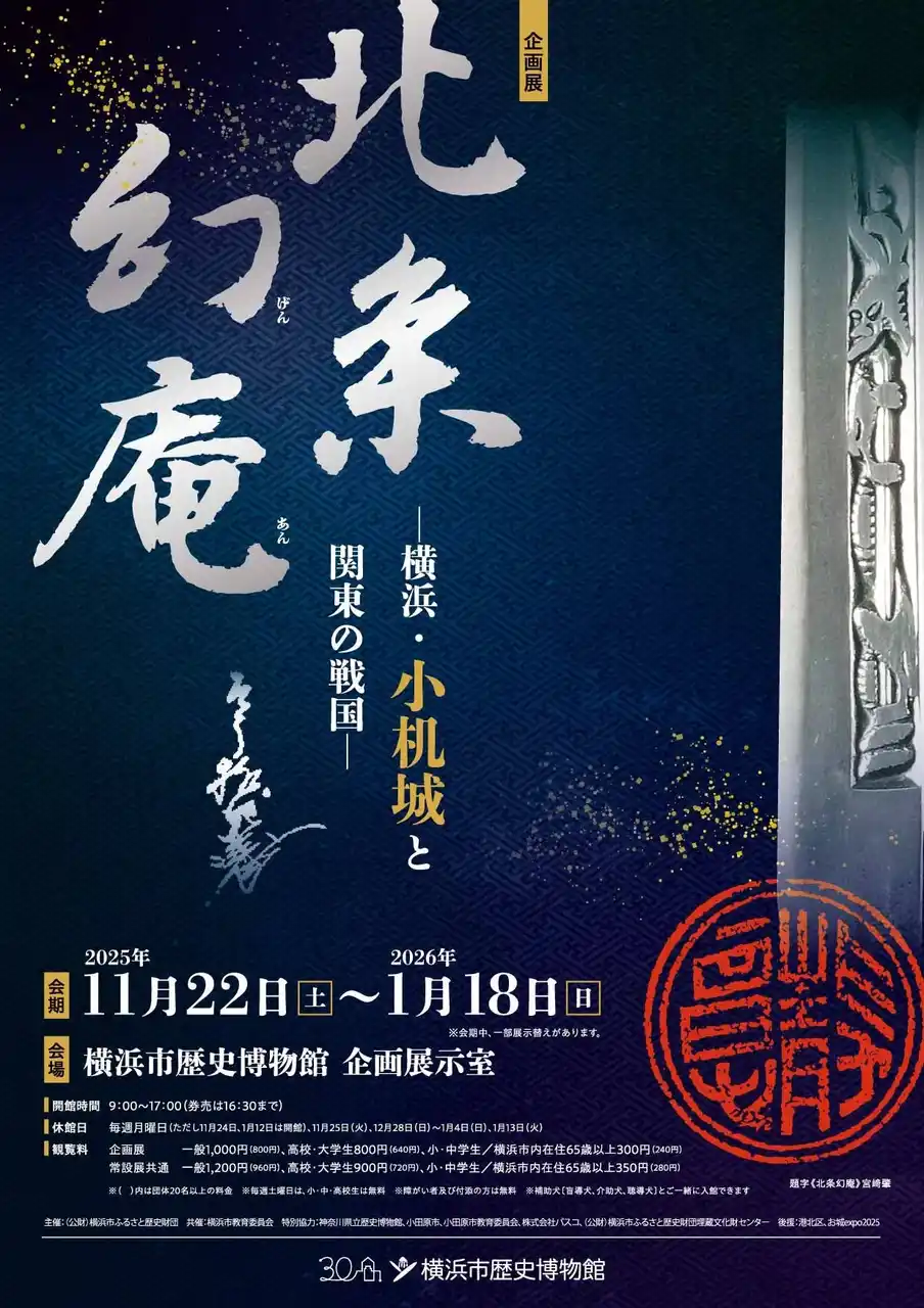長寿であったにも関わらず、これまで幻庵の生涯はあまり知られていませんでしたが、近年の研究で幻庵ゆかりの歴史資料が発掘され、その人物像がわかってきました。展示では、最新の研究成果を踏まえ、様々な歴史資料をもとに幻庵の生涯をたどりながら、横浜の戦国時代に迫ります。 |