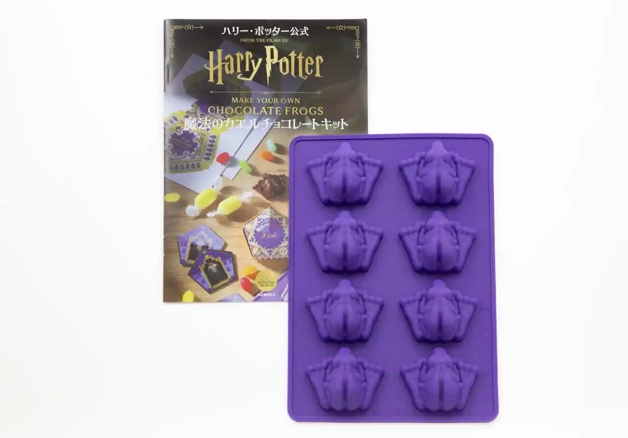 | 『ハリー・ポッター公式 魔法のカエルチョコレートキット』は、カエルチョコレートが作れる型、ギフト用のボックス&動く魔法使いカード(ダンブルドア)各8個、レシピブックがセットになっています。 | |||||||||