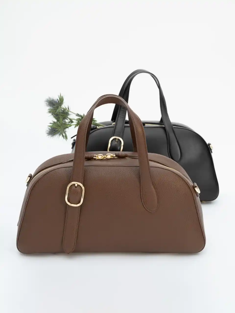 磨かれた木目の奥深い艶、そして革装丁の古書が放つ静かな輝きからインスパイアされた、豊かで深みのあるブラウン。安定感と洗練された印象を与え、地に足のついた大人のスタイルを演出します。今年のトレンドであるブラウン系コーディネートにも、上質な深みをもたらします。高品質なイタリア製ペブルドカーフレザーは、使い込むほどに深みを増し、控えめな光沢と洗練された美しさが魅力です。この新色は、Asra Boston Bag で登場。見た目以上に大容量でありながら、コーディネートを格上げするスタイリッシュなデザインを両立。