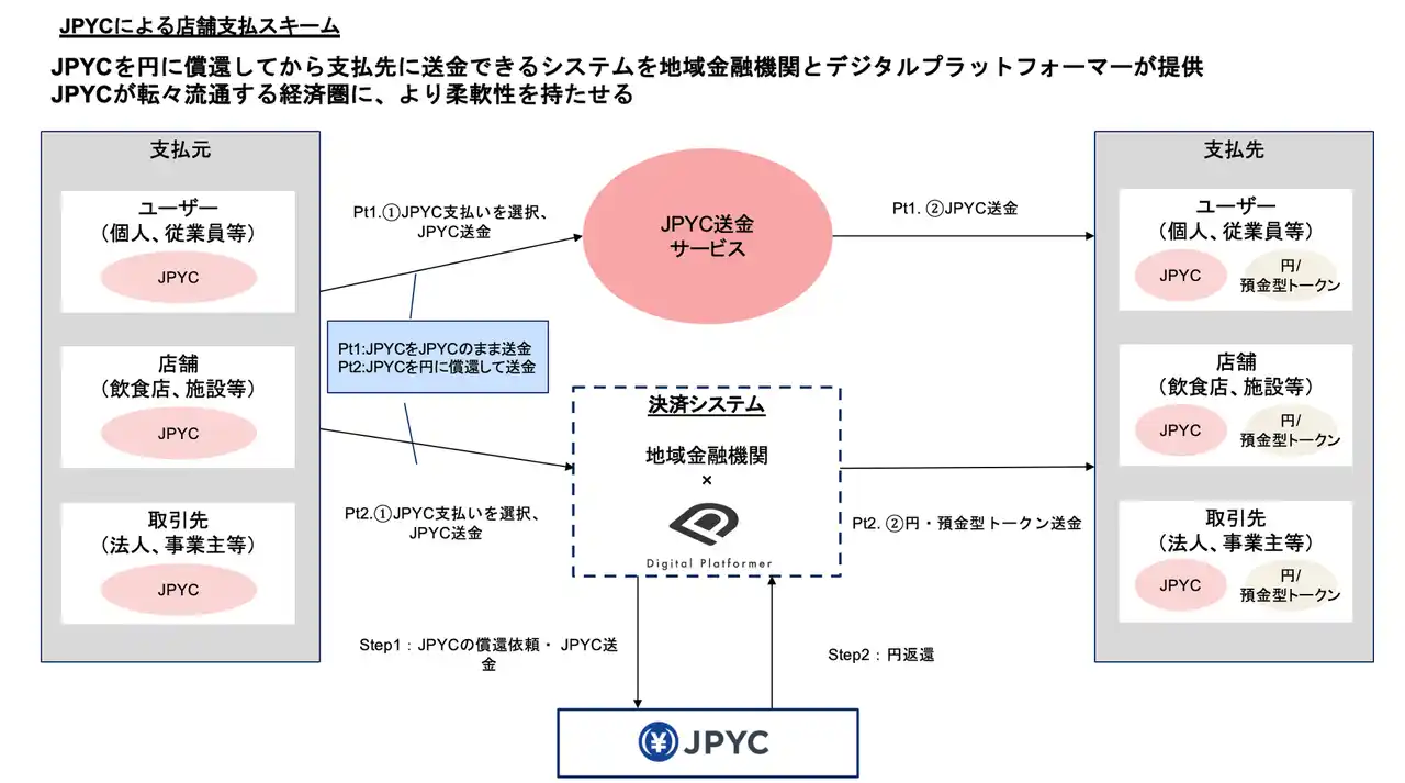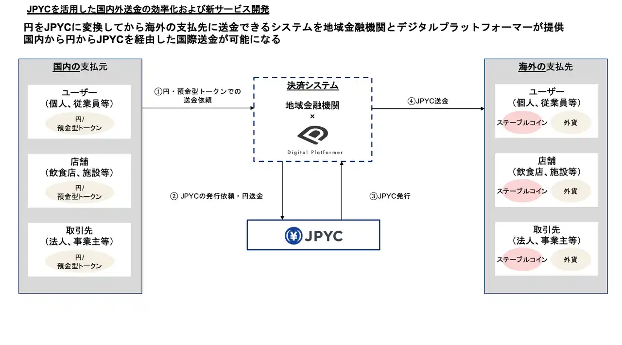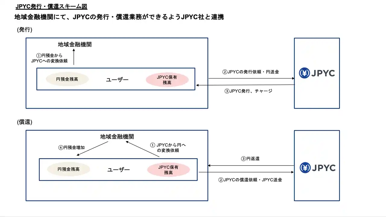 一方、JPYCは資金移動業型の日本円建てステーブルコイン「JPYC(ジェーピーワイシー)」の発行を開始し、全国の地方金融機関から、JPYCの発行や償還、決済インフラとの接続に関する相談が寄せられています |