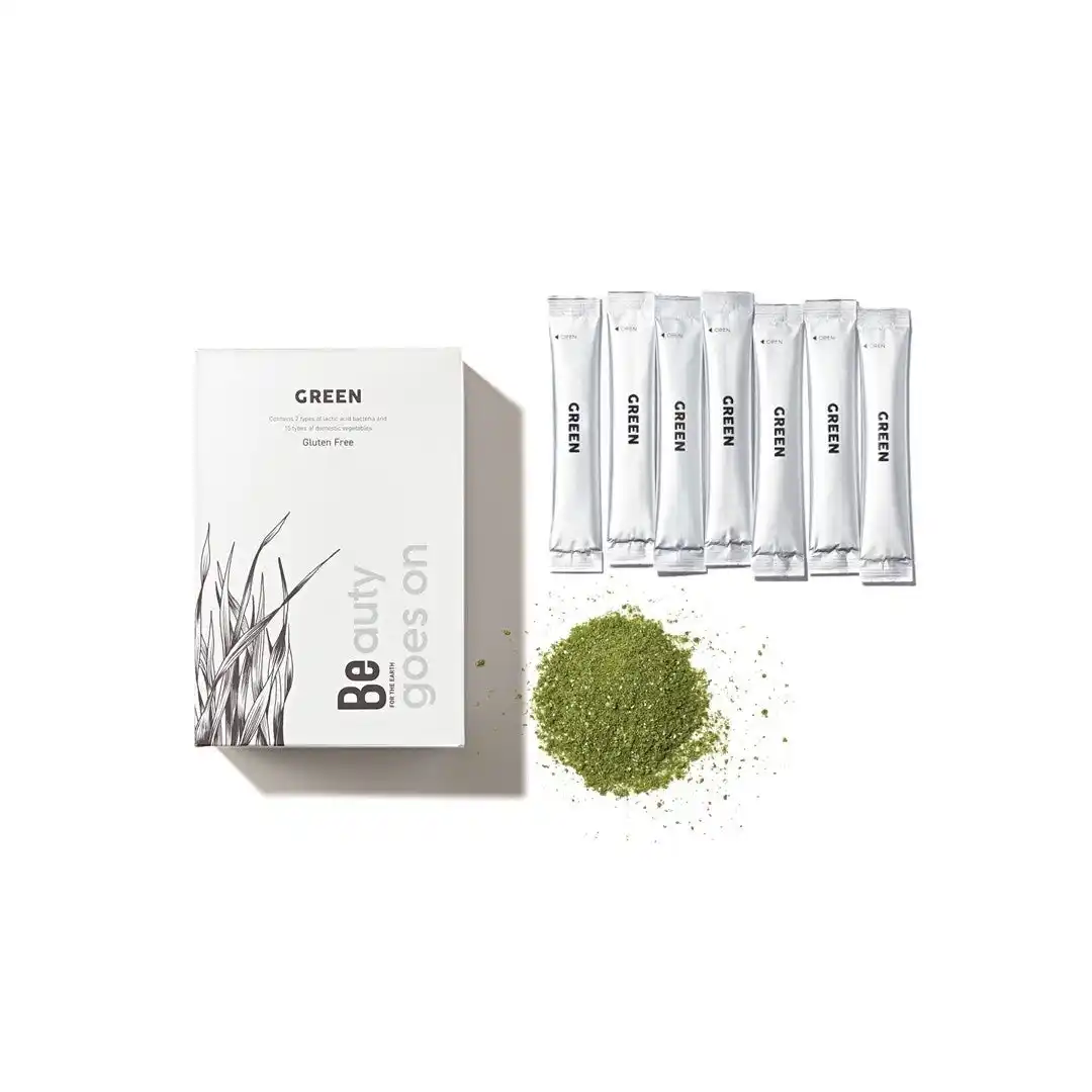 3種の乳酸菌や15種の国産野菜をパウダーに。この春、グルテンフリーに生まれ変わったベストセラーのグリーンスムージー「Beグリーン GF」1箱(約30日分)に7袋をプラスしたお得なセットを大丸梅田店限定でご用意しました。 |