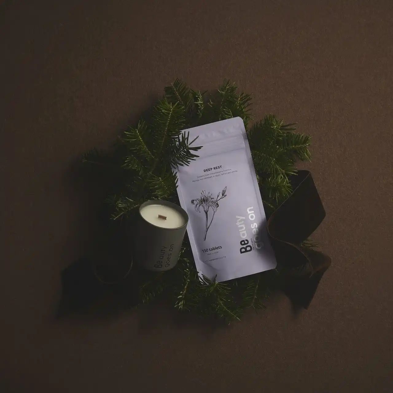 与那国伝承の“眠り草”クワンソウ由来の休息サプリメント「ディープレスト」に、北海道・釧路のトドマツのエッセンシャルオイルの限定キャンドルをセットにしたホリデーコフレです。この冬は、休息のサンクチュアリへ。 |