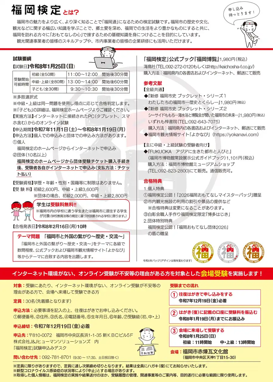 詳細は「福岡検定」ホームページ(https://fukuokakentei.com/benefits/)をご覧ください。 |