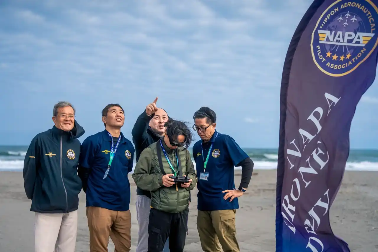 パイロットと補助者が交代で飛行を担当。NAPA独自の運行マニュアルに基づく「2人1組の安全運航体制」で、現場のリスクを可視化しながら確実なドローン運用を行っています。 |