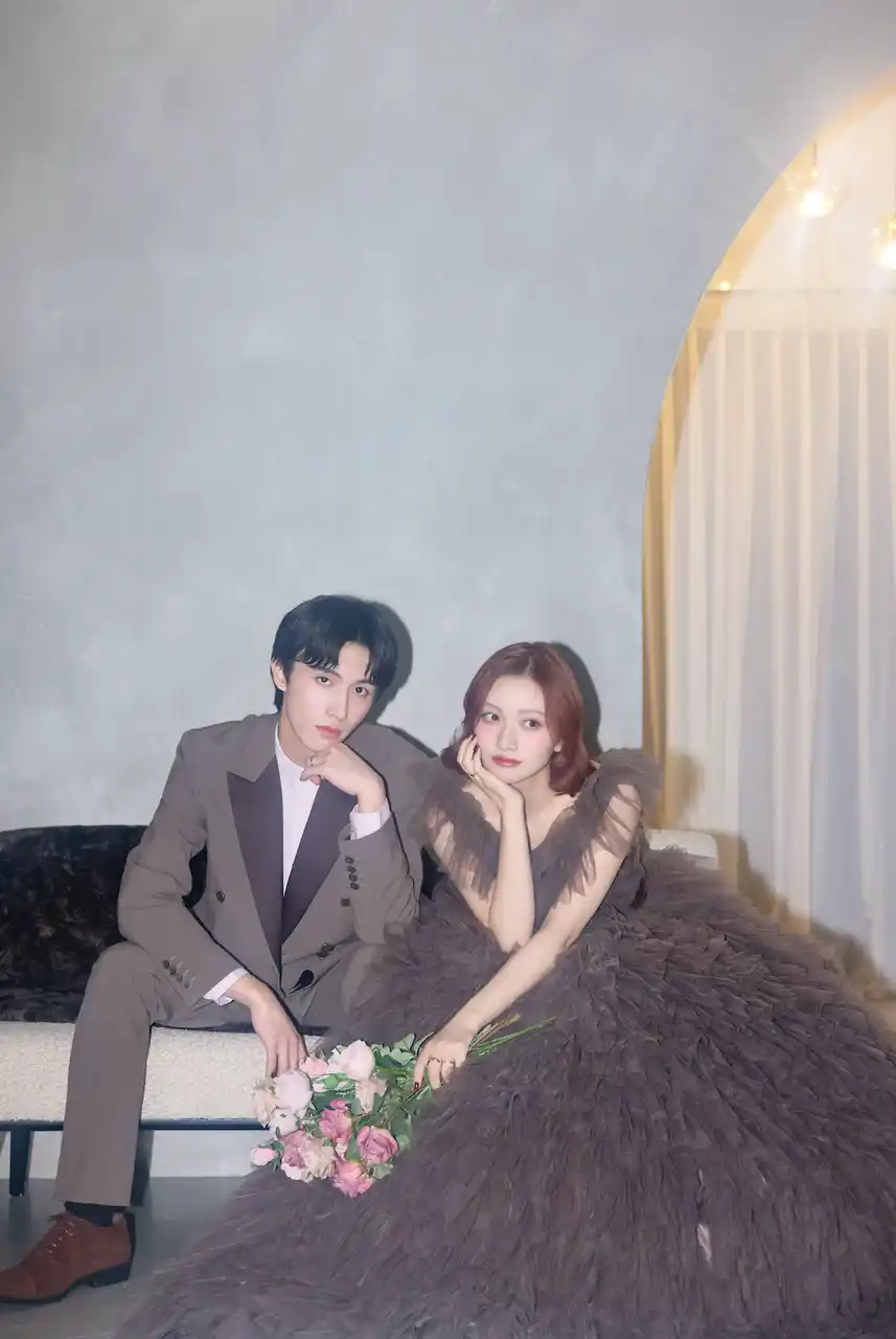 ふんわりと柔らかいライティングにダークトーンの衣装を合わせて |