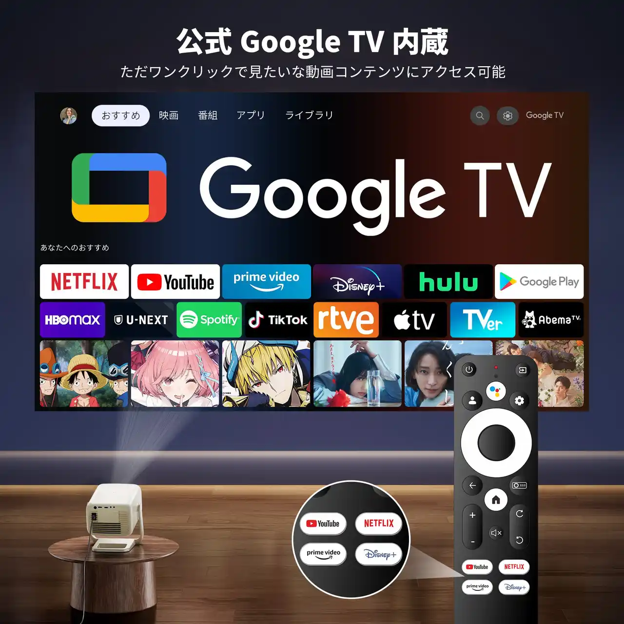 従来の Android TV プロジェクターが抱える「一部アプリで再生不能」「突然エラーで停止」といった課題を、Google より正式認定を取得した「Google TV」が根本的に解決。 |