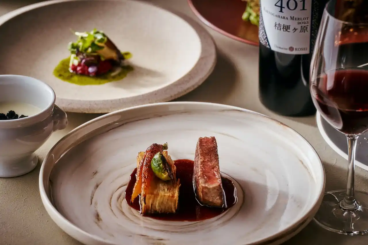| 森の中に佇む印象的なハーフドーム型の建物、WOODSIDE dining。大きなガラス壁面には四季折々の自然の色彩が映し出され、まるで風景画のような美しい時間が広がります。ディナーでは薪火の力を生かした「薪焼イノベーティブ」を提供。薪の種類や温度を巧みに操り、旬の食材の持ち味を最大限に引き出します。遠赤外線効果で外は香ばしく、中はジューシーに仕上がり、薪のほのかな香りが余韻を深めます。料理のインスピレーションは和食をはじめとした多国籍なエッセンス。「出汁」「発酵」「スパイス」を巧みに組み合わせ、新たな味わいを創出します。さらに、料理との相性を考え抜いた厳選ワインをセレクト。薪火の豊かな風味とワインが織りなすハーモニーを、五感でじっくりとご堪能ください。 | |||||||||