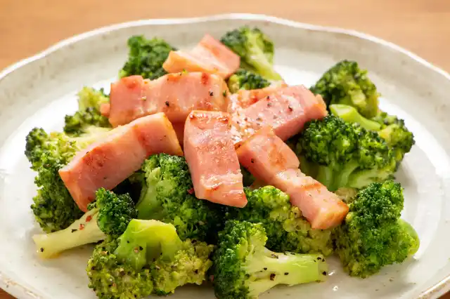 ベーコン、ブロッコリー、チーズを贅沢に盛り付け |