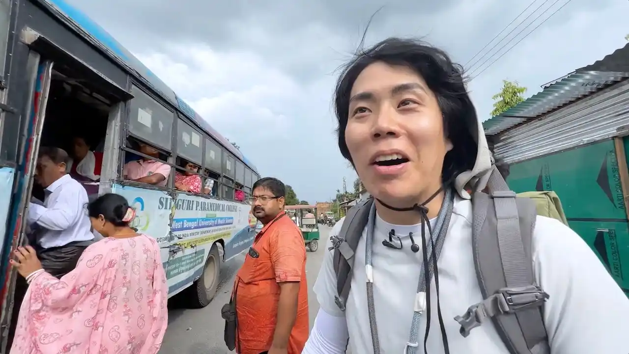 11月16日(日)放送の#8では、6日間、約1200kmを移動したバングラディシュの旅を終え、ついに南アジア旅2つ目の国・インドへ。バングラデシュの国境を越え、無事インドに入国したくるまは、国境近くにある地方都市・シリグリ行きのバスを探しますが、満員状態のバスに「パンパンなんですけど!」「乗れる?マジ?」と唖然。意を決して乗り込んだものの、バスが出発すると、立ち乗り状態のくるまの目の前を割り込むように移動する男性が…。満員のバス車内を行ったり来たりする男性に、くるまは思わず「いま無理でしょ、絶対」「何がしたいんだよ」と苛立ちを見せますが、のちにその男性は乗務員であることが判明しました。 |