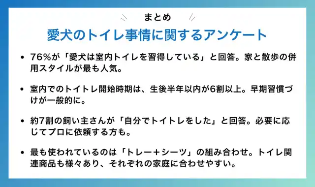 | 76%が室内トイレOK!家と散歩の併用が最も選ばれるスタイルに | ||||||||||||