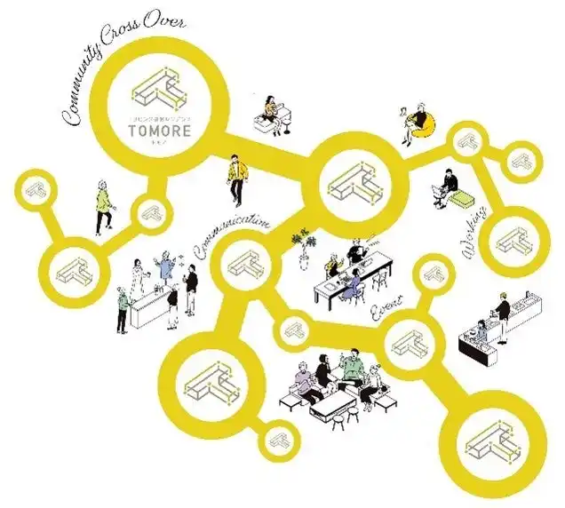 入居者様はご入居いただいている施設のみではなく、TOMORE シリーズ各施設のコワーキングラウンジを自由に相互利用いただけるようになります。これにより、各コワーキングラウンジで開催される各種イベントに参加可能となり、また現地運営スタッフが他拠点入居者様同士のコミュニティ形成をサポートすることで、拠点横断型のコミュニティが活性化され、TOMORE シリーズ全体での新たな生活体験を創出することを目指します。 |