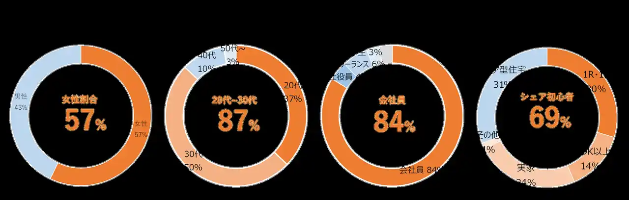 また入居者様全体の8 割以上が会社員、内約7 割が上場企業や大手外資系企業に勤務されています。従来の賃貸住宅ではなく、あえて「コリビング賃貸レジデンス」を選び、次世代のライフスタイルを実践する点も大きな特徴です。 |