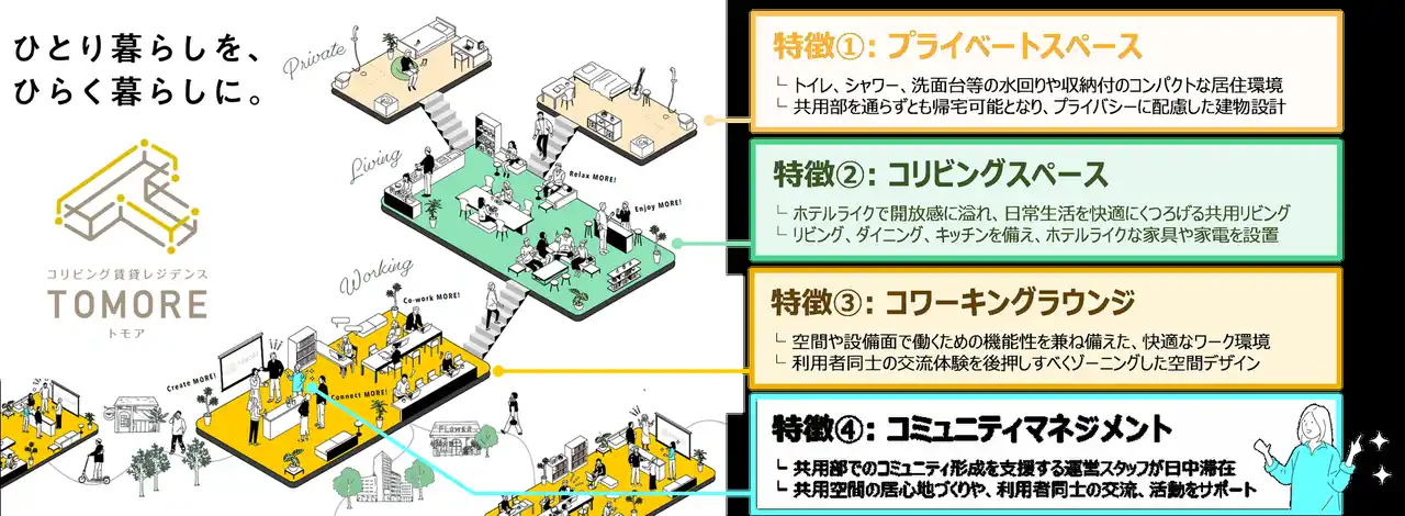 今後も、「TOMORE」は都心部で暮らす20~30 代の社会人単身者に向け、新たな「一人暮らしの選択肢」を提供してまいります。 |