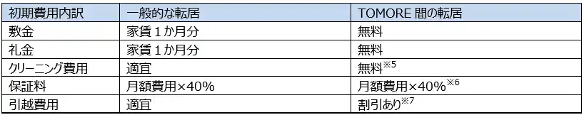 ※5:TOMOREに新規入居の場合、通常は退去時のクリーニング費66,000円が発生します。(家具付住戸の場合81,400円) |