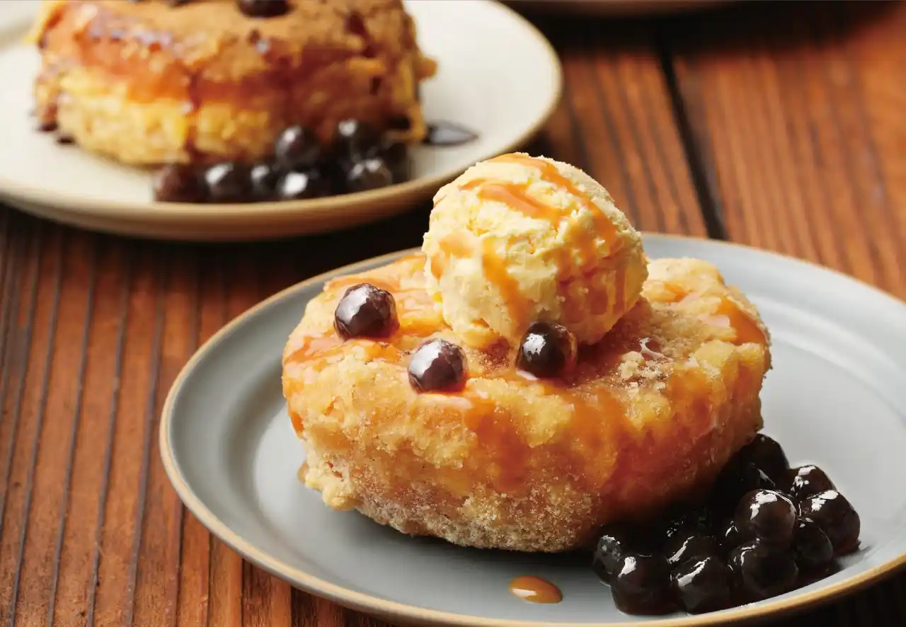 サクサク揚げたてのドーナツにひんやりアイス、そして台湾甜商店自慢のもちもちタピオカを合わせた、食べ応え抜群の贅沢スイーツに仕上げました。 |