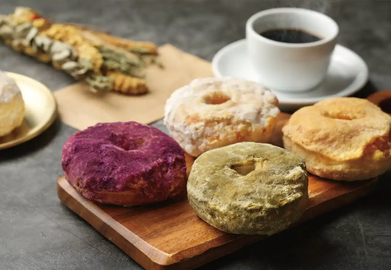 台湾ドーナツの外はさくっと、中はふわっと軽い食感に仕上げ、ジャスミンや紫芋など台湾らしい香りをまとわせました。 |