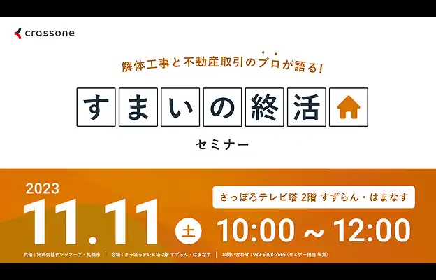 札幌市では連携協定の締結を受けて、2023年11月11日に「すまいの終活セミナー」を実施しました。会場とオンラインのハイブリット開催で、当社からは家の解体について、住友不動産販売社より土地の売却について、市の職員からは市の制度について解説を行いました。 |
