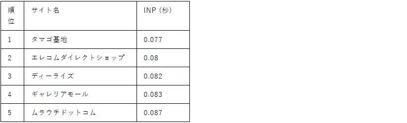 Core Web Vitalsの新指標 INPで優秀なTOP5社 |