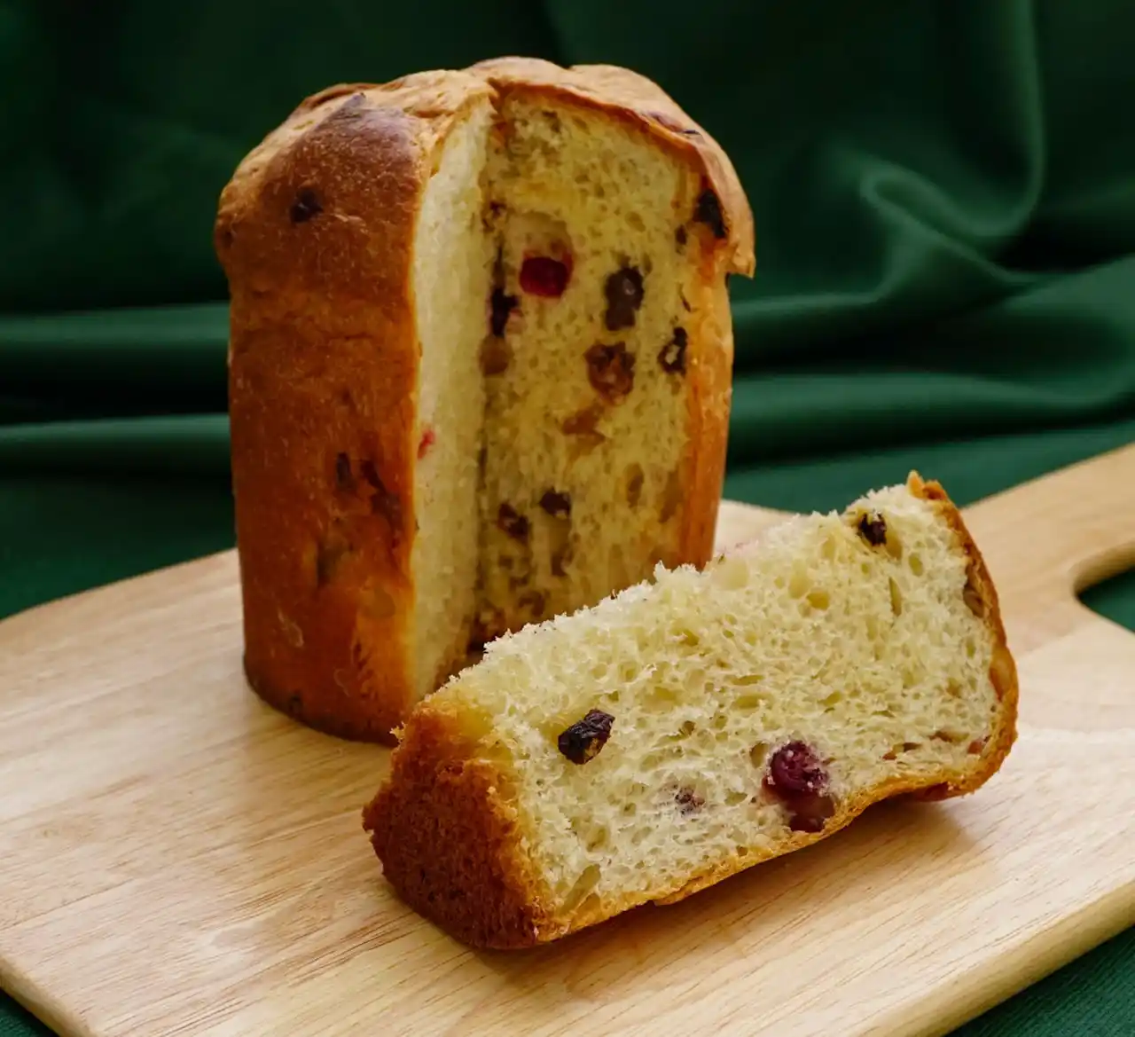 2022年の発売以来毎年ご好評をいただいているパネトーネは、イタリアの伝統的な菓子パンの一つで大きなドーム型のフォルムが特徴です。ラム酒に漬け込んだ5種類のドライフルーツを贅沢に練り込み、長時間発酵させた自家製のパネトーネ生地をしっとりと焼き上げました。長時間の発酵によって生まれる自然な甘みと香ばしさが特長です。カットするたびにふんわりと広がるドライフルーツの香りと、軽やかで口溶けのよい生地が調和し、朝食やティータイムにもぴったり。クリスマスを待ちながら楽しんでいただきたい、季節限定の味わいです。 |