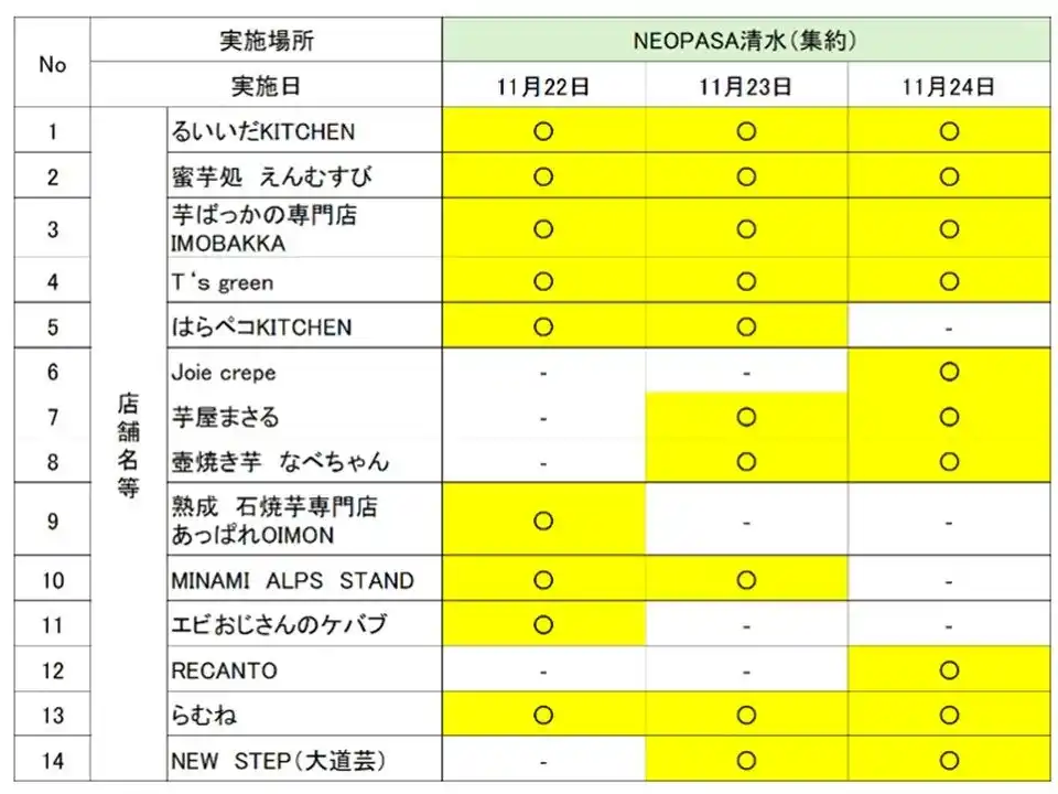 【中日本エクシス株式会社】 NEOPASA清水(集約)にて「芋フェス」初開催!