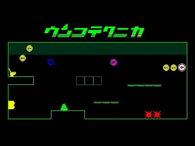 『ウンコテクニカ』は、ネオンに彩られた世界で、自動で突き進む「ウンコ」をゴールである便器へとジャンプで導く、高難易度2Dアクションです。 |