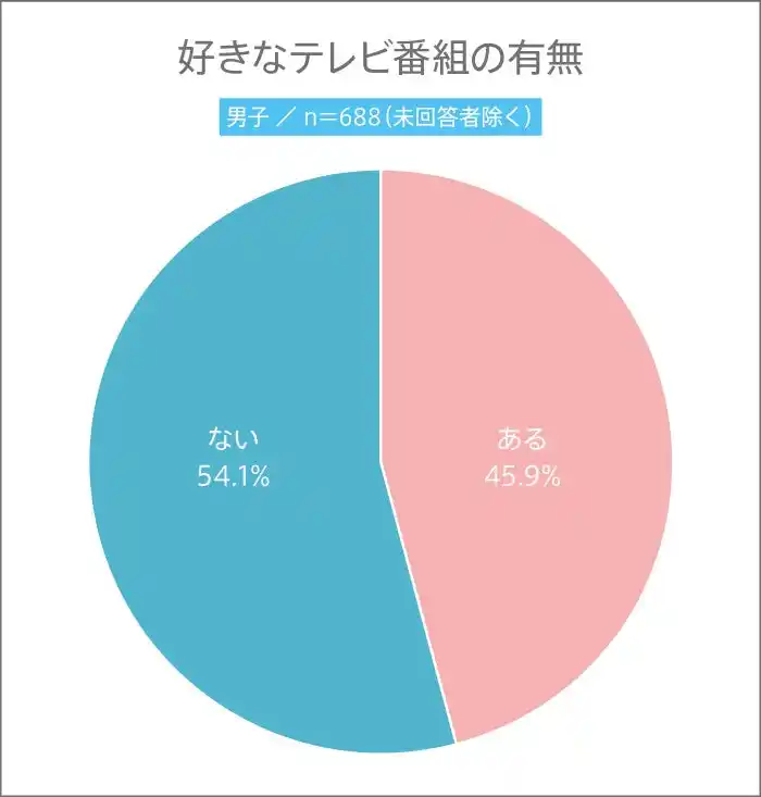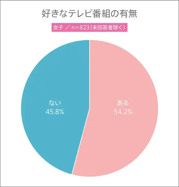 | 女子は5割以上が好きなテレビ番組が“ある”と回答。一方男子は、“ない”が5割以上でした。 | |||