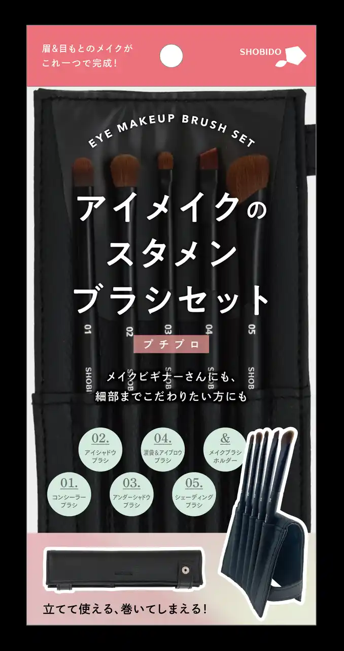 5種のブラシ(コンシーラーブラシ/アイシャドウブラシ/アンダーシャドウブラシ/涙袋&アイブロウブラシ/シェーディングブラシ)により、アイメイクに必要な工程を網羅。 |