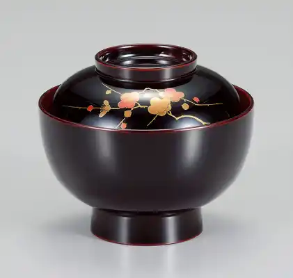 【手描き蒔絵・磨き蒔絵】越前塗 梅 溜塗(ためぬり)雑煮椀[1客]
