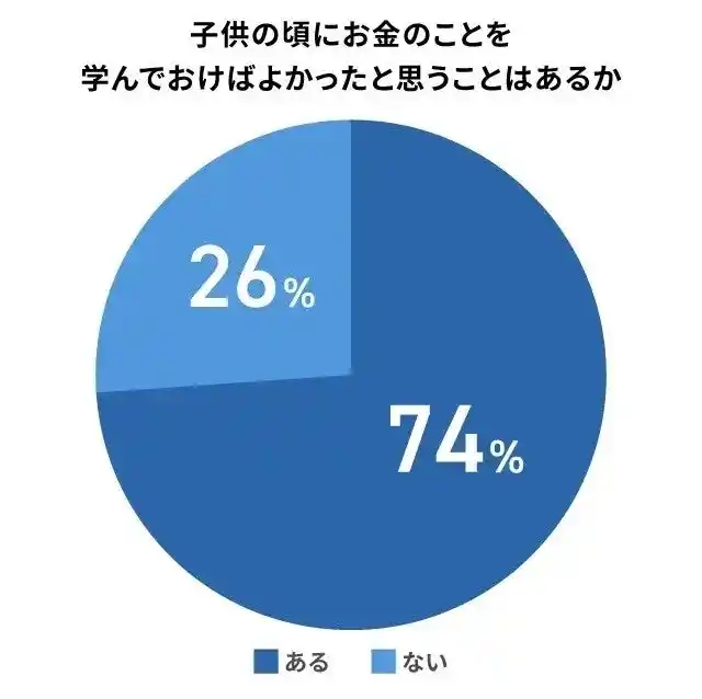 お金の教育を受けたことのない保護者は、大人になって振り返ってみて、どのように感じているのでしょうか。「子どもの頃にお金のことを学んでおけばよかったと思うことはあるか」という質問で、74%もの保護者が「学んでおけばよかった」と回答しています。 |