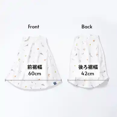 寝ている間も足をよく動かす赤ちゃんのために、前裾を後ろより広めにデザイン。 可動域をしっかり確保することで、赤ちゃんの快適な眠りをサポートします。 |
