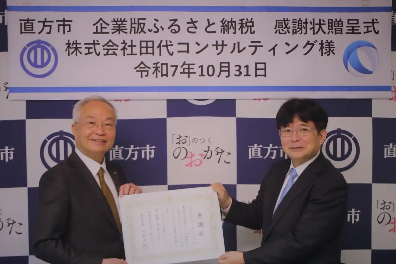 【直方市】株式会社田代コンサルテイング様企業版ふるさと納税を通じてご寄附いただきました