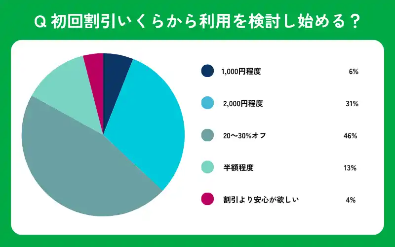 | エアコンクリーニングの初回割引があった場合、どの程度の割引で利用を検討し始めますか? | ||||||||||||||||