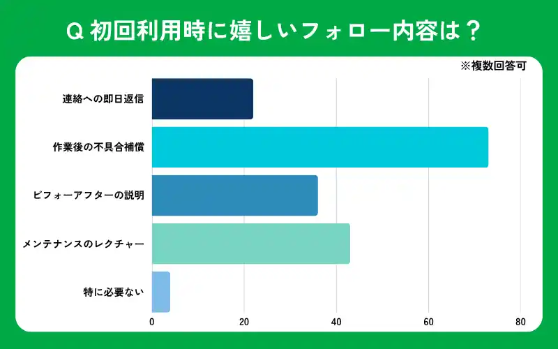 | エアコンクリーニングの初回利用時にあると嬉しいフォロー内容は何ですか?(複数選択可能) | ||||||||||||||||