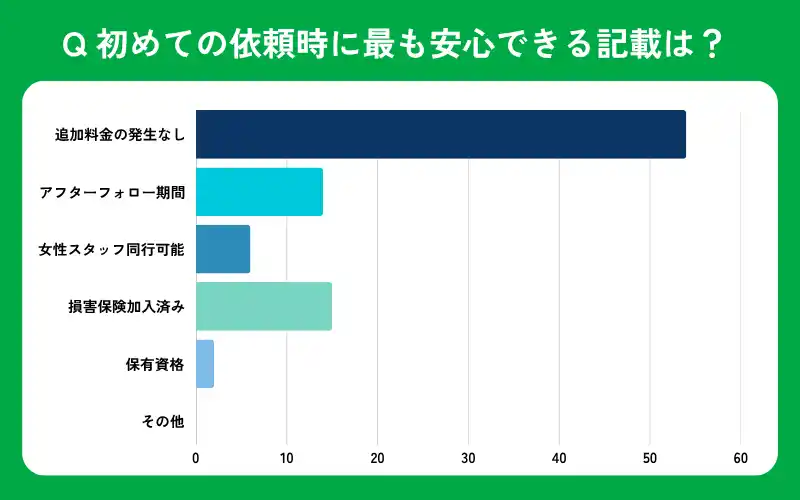 | エアコンクリーニングの初めての依頼時に最も安心できる記載はどれですか? | ||||||||||||||||