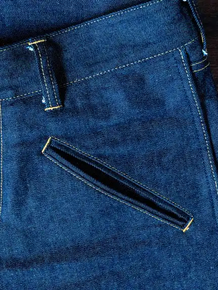 デニムには珍しい袋ポケットと膝裏は立体裁断 |